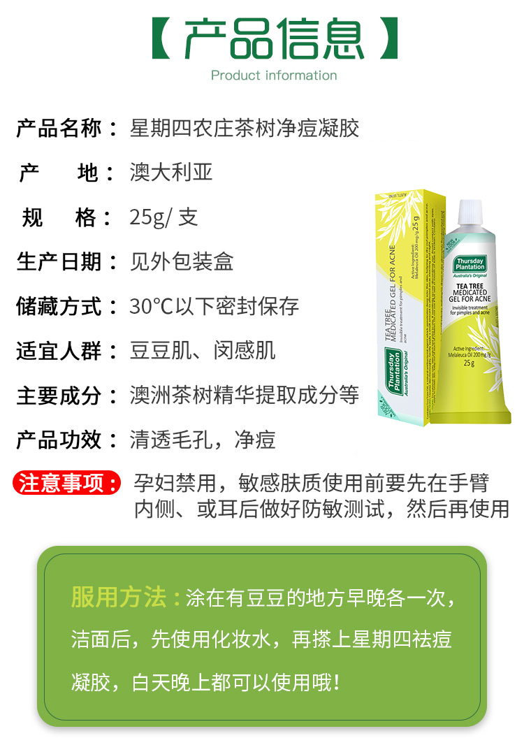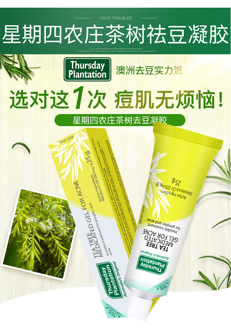 星期四农庄茶树祛痘凝胶去痘印神器粉刺抗痘软膏25g