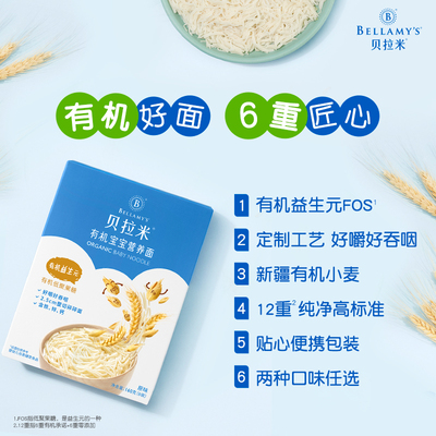 贝拉米有机营养面条益生元好嚼无添加盐宝宝儿童辅食碎碎面食160g