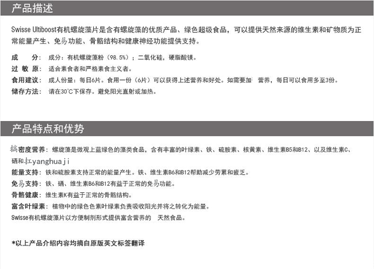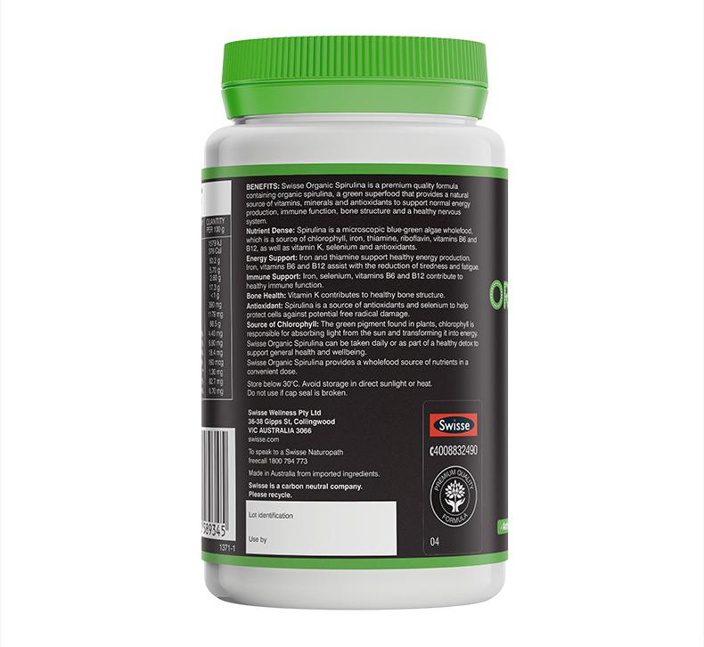 Swisse有机天然高浓度螺旋藻片膳食纤维片200粒