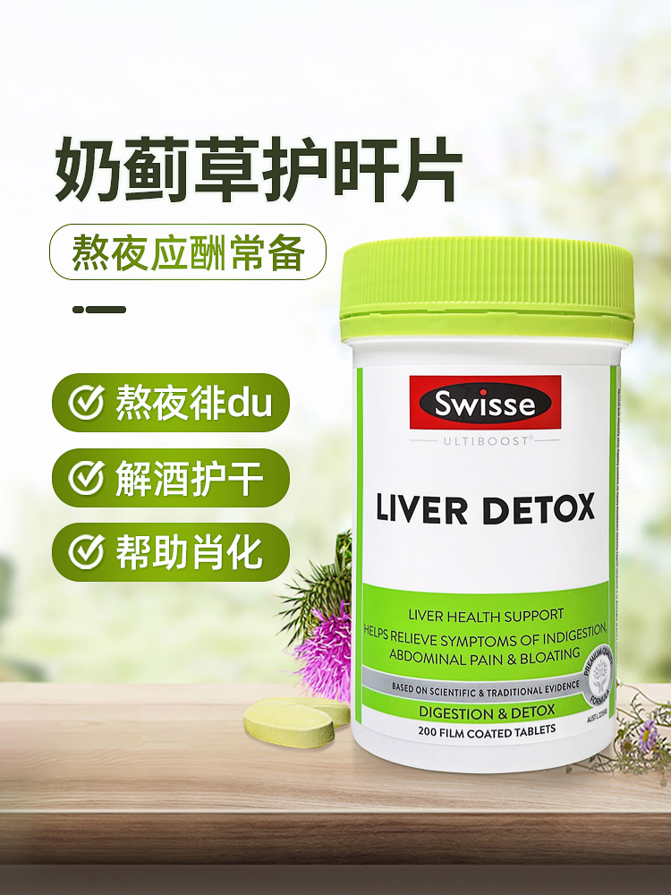 澳洲swisse肝片200粒加强奶蓟草肝宝护旰宁熬夜解酒熬夜旰片120粒